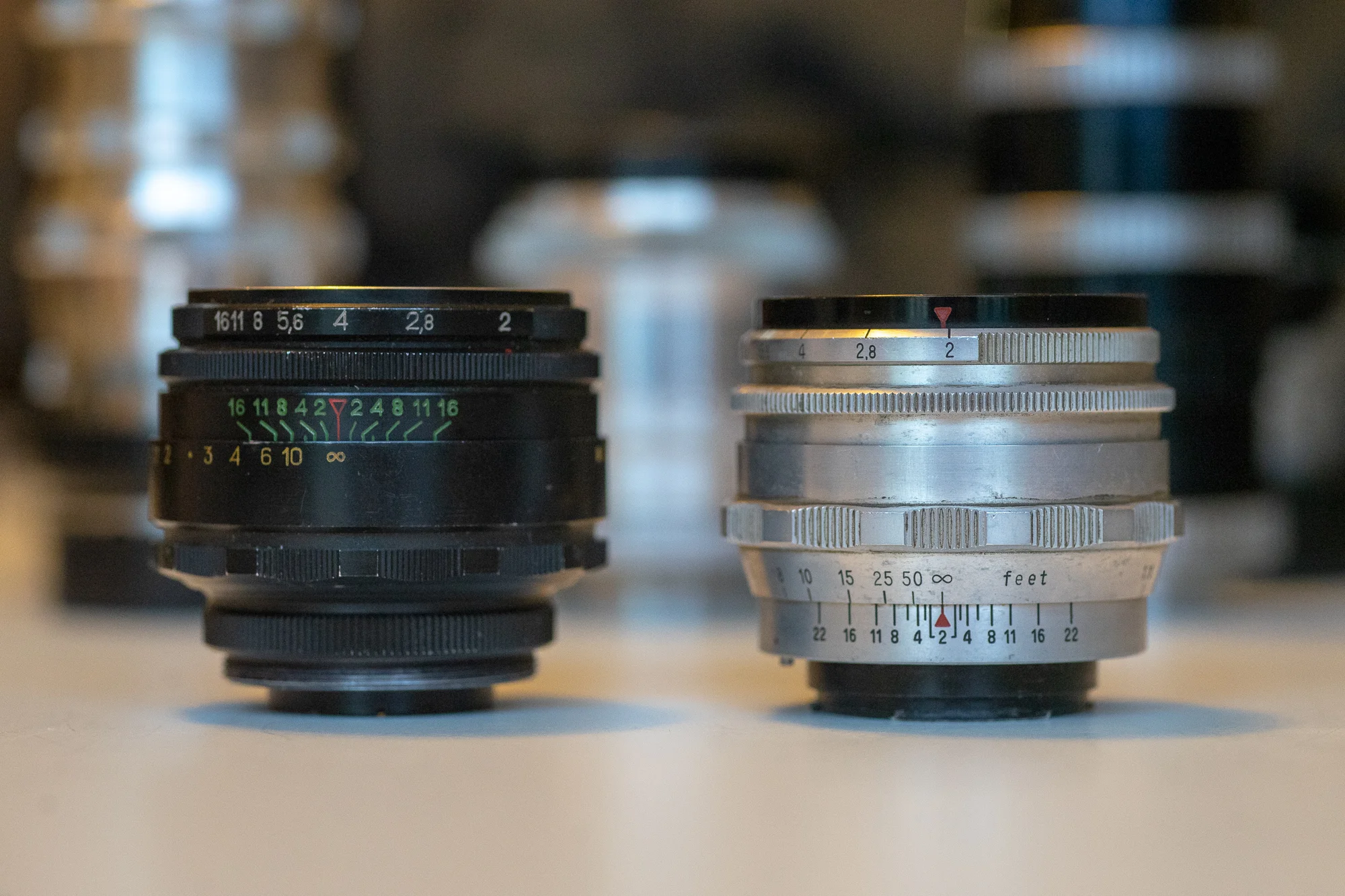 Left to right: 1) Helios 44-2 58mm f/2 1982 from eBay 2) Zeiss Biotar 58mm f/2 1951 from Craigslist in Pittsburgh, PA